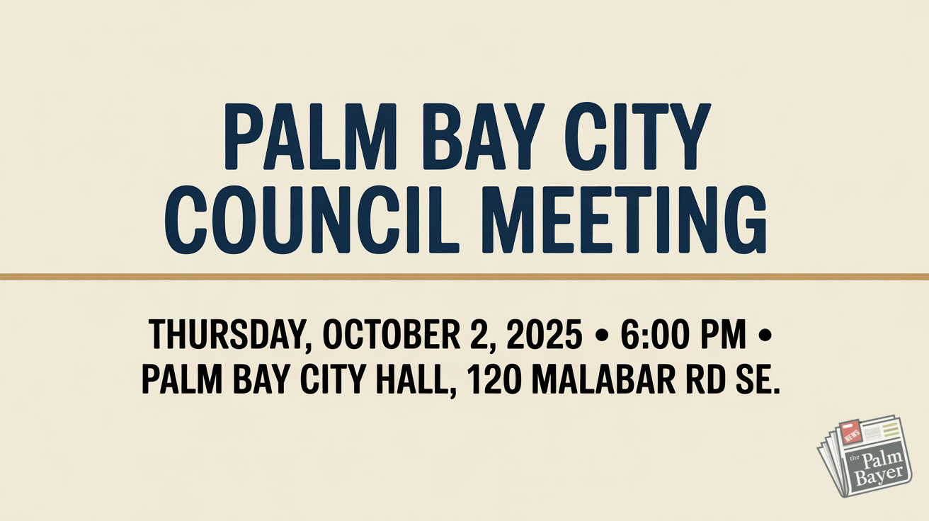 The meeting is open to the public and will be held at Palm Bay City Hall, 120 Malabar Road SE. Residents are welcome to attend in person, provide comments, or watch the live stream at palmbayfl.gov/meetings.