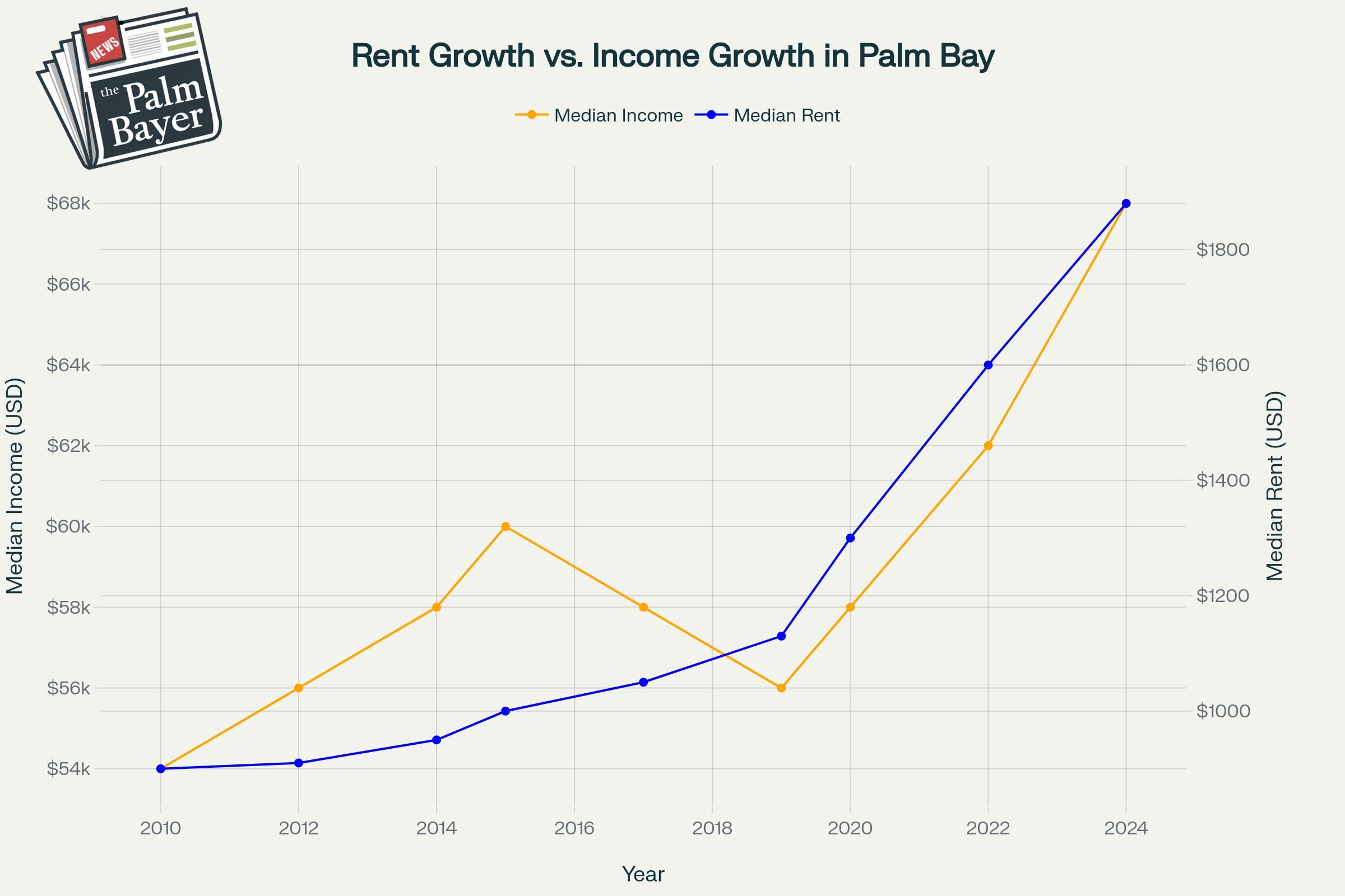 The most significant pressure point for residents remains affordability. While rent growth has finally flattened, the average rent in Palm Bay sits near its historic high of $1,881.